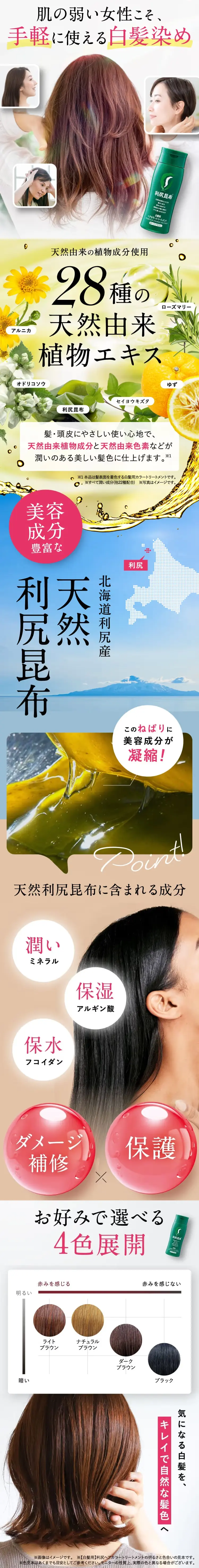忙しくて白髪染めをする時間がない人に人気♪ - 利尻は髪が傷まないトリートメントタイプ!