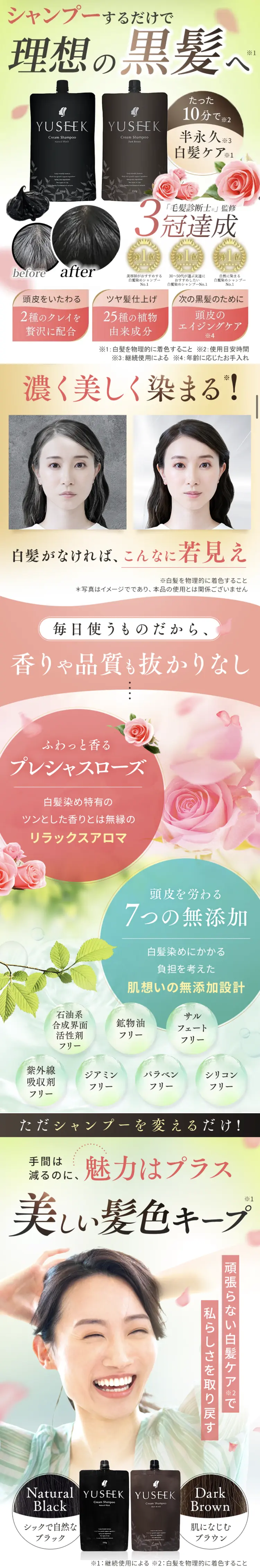 - 天然成分(植物性ポリフェノール)によるカラー効果に着目した白髪染め※シャンプー♪